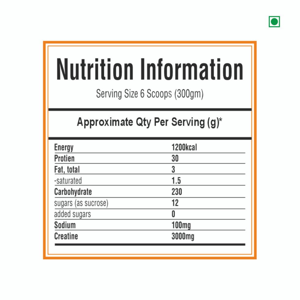 Each serving packs a massive 1200 Kcal of energy and 30g of premium protein, giving your body the nutrients it needs to accelerate muscle growth and recovery. With 230g of carbohydrates, 3g total fat, and 1.5g saturated fat, this powerhouse formula ensures consistent calorie surplus for lean mass gain.